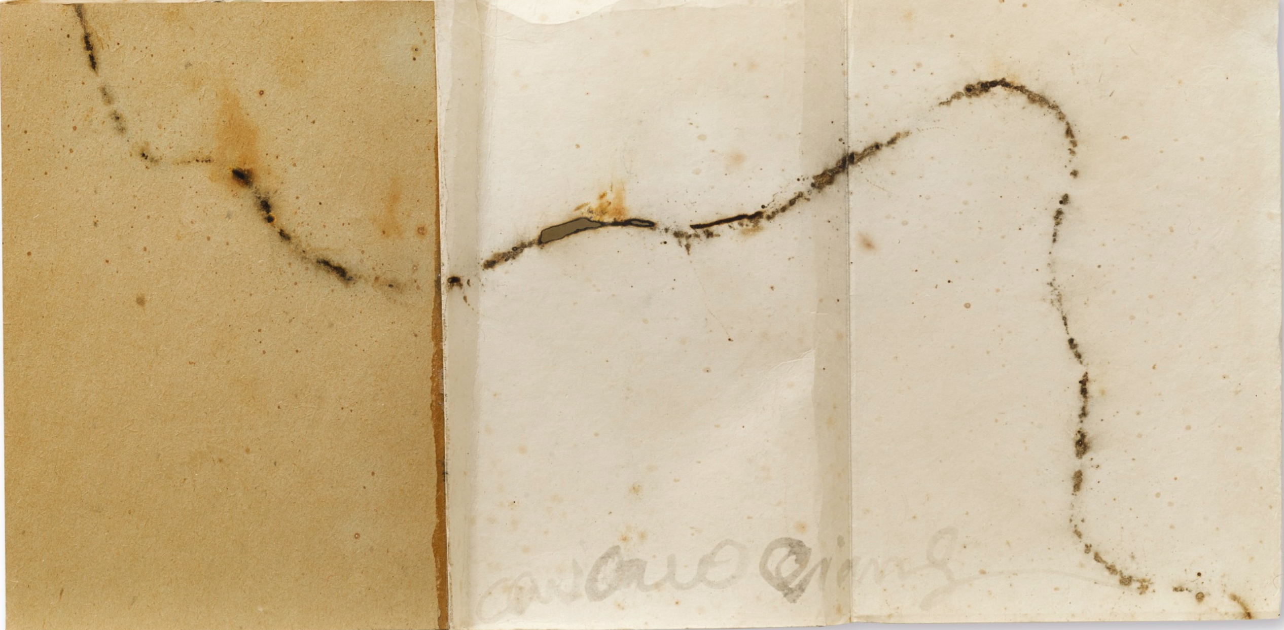 This 1994 manuscript serves as a fixed imprint of that explosive moment, capturing the fleeting flames on paper. The marks left by the gunpowder blast form an intricate interplay of black and gray, resembling drifting clouds or the scorched imprints of history itself. This cross-media fusion was strikingly innovative and represented a highly avant-garde experiment in contemporary art during the 1990s. Today, this manuscript stands not only as a refined work of art but also as a record of an unrepeatable artistic practice.