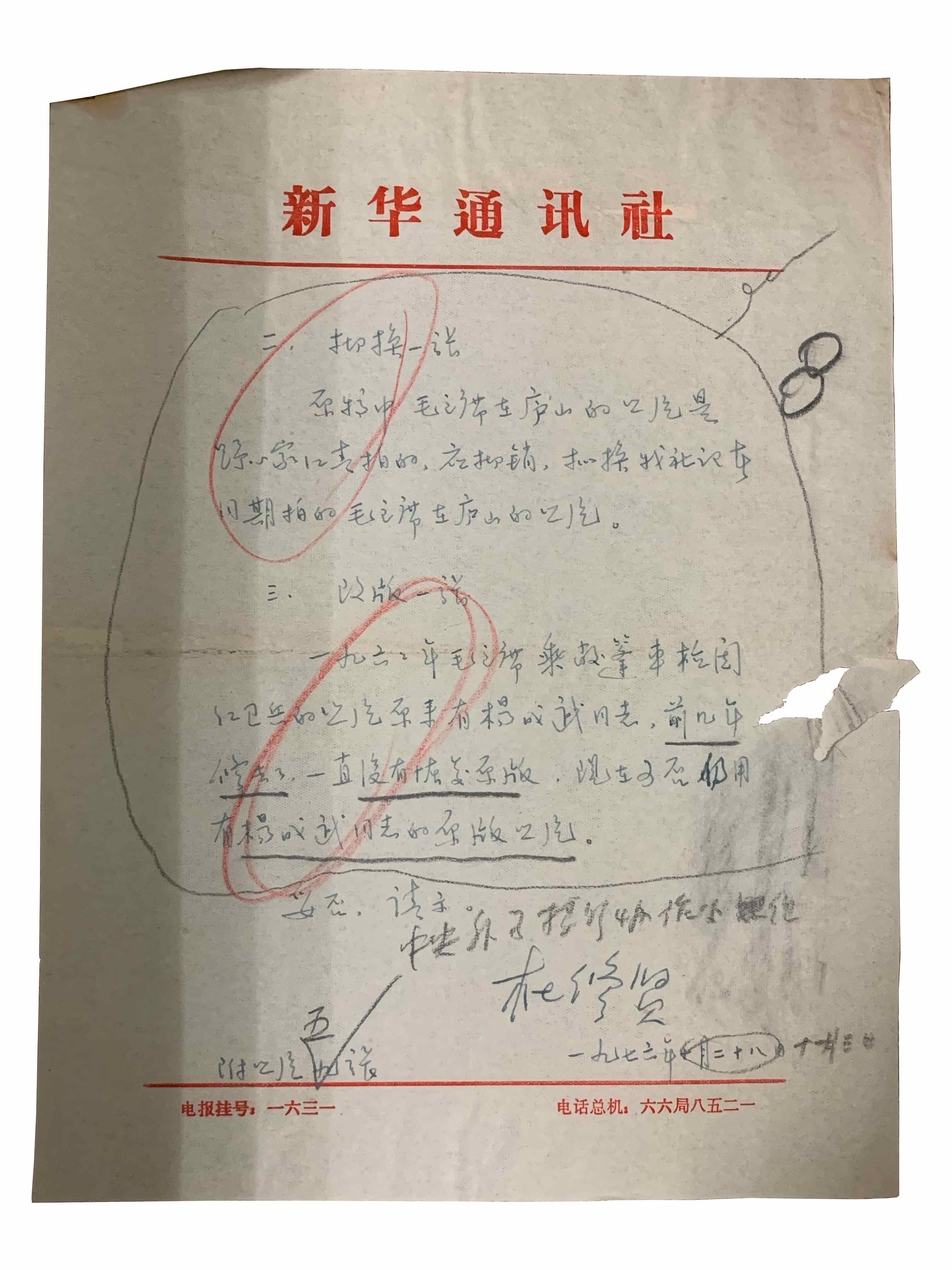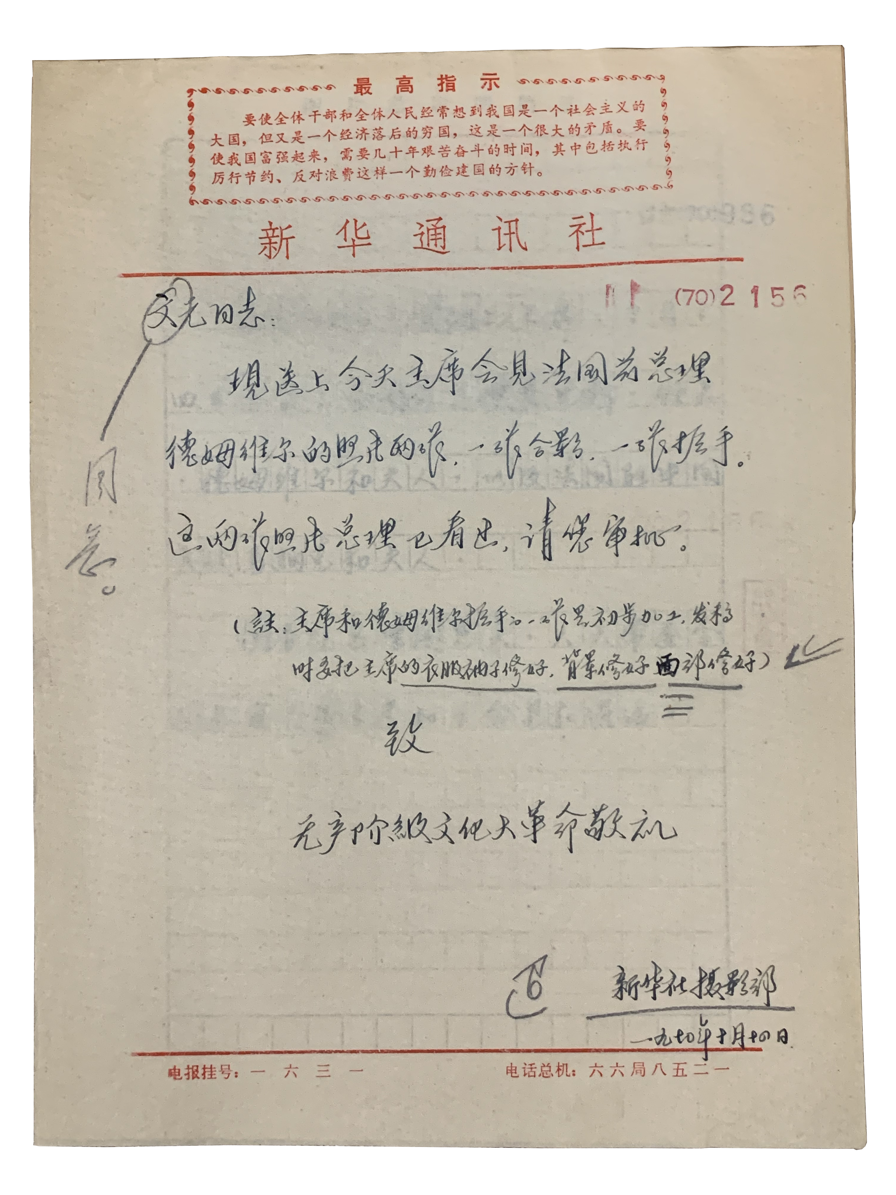 Request for instructions on script distribution by the Photography Department of the Xinhua News Agency on October 14, 1970